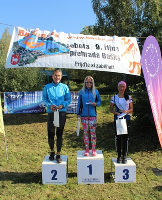 Hodinu před polednem přišel na řadu hlavní závod okolo přehrady Baška, který má rovinatý profil a malou krosovou vložku v lesíku, ale i tak si zde většina běžců dělá osobáky. Nejprve odstartovaly ženy, a to na 2,8 km trati. Zde již potřetí zvítězila odchovankyně Slezanu FM Iveta Rašková USK Praha (10:01) stylem start-cíl. Krásný souboj probíhal o stříbro mezi Katkou Krtkovou TJ Slezan FM (10:35) a Market Kašnou BK Ludgeřovice (10:36), kdy holky do druhého kilometru běžely spolu, ale před lesíkem se Katka urvala s šla před Market a ta i přes skvělý finiš už Katku nedotáhla a ta vyhrála tento souboj o pouhou sekundu.