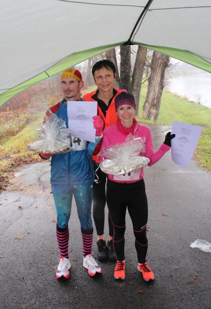 Celá 7,5 km trať závodu vede po asfaltové cyklostezce, která lemuje řeku Olzu (Olši). Počasí dnes moc nepřálo a již od ranních hodin pršelo a teplota byla okolo 2 °C, a to byl asi i důvod slabší účasti, ale i tak byly k vidění parádní výkony, o které se postarali závodníci David Wawreczka TJ Jäkl Karviná a Markéta Kašná BK Ludgeřovice. Hned od začátku šla tato dvojice do čela závodu a nikoho před sebe již nepustila. David si tak s přehledem doběhl pro vítězství mezi muži v čase 29:51 a Market mezi ženami s časem 30:57 o minutu překonala dosavadní ženský traťový rekord. Stříbro si odnesli Nelly Michopulu TJ Jäkl Karviná (32:06) a Jiří Říha (36:27). Bronz brali Ivana Zbořilová BK SAK Karviná (32:55) a Jakub Charvot (38:03). Po doběhnutí do cíle na každého čekal vynikající domácí koláč a občerstvení, kdo měl chuť, si tak mohl dát i něco ostřejšího na zahřátí. Vítězové si odnesli tradiční obrovský tvarohovo-povidlový koláč, který napekla sama paní pořadatelka Táňa Červená, které patří velký dík za organizaci celého