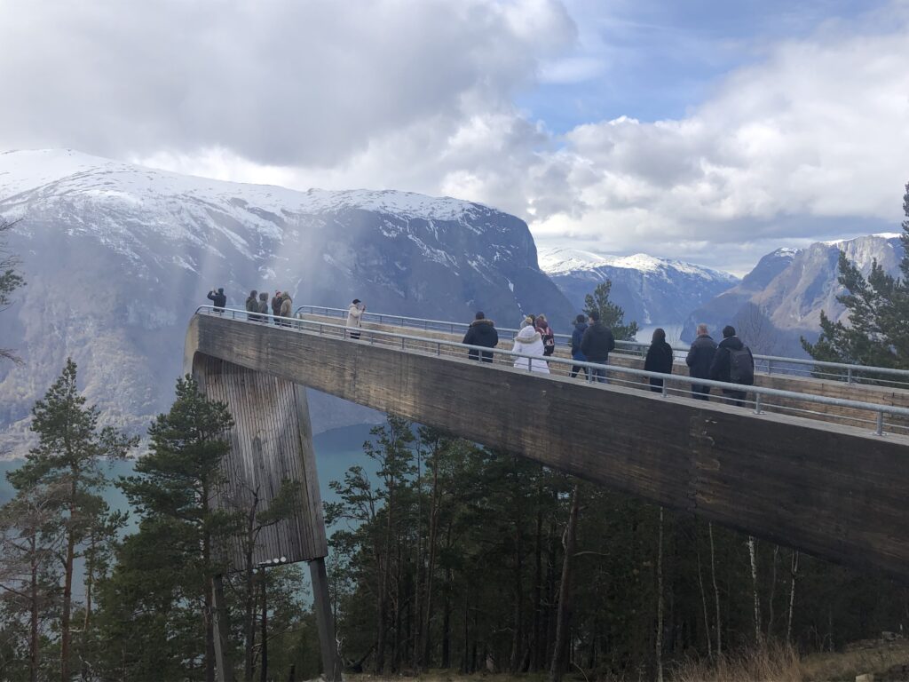 Připlouváme do Flåmu, který na náš působí jako z filmu Tenkrát na západě. Ticho a klid. S pivem si plně vychutnáme tu atmosféru. Zde nás čeká náš mikrobus. Další zastávkou je vyhlídka Stegastein, která shlíží z výšky 600m na již zmíněný fjord.