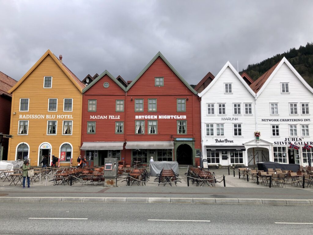 Přestože je Bergen druhé největší norské město (cca 250 000 obyvatel), je centrum města poměrně malé. Dominantou je čtvrt Bryggen. Typické dřevěné domy zde stojí již mnoho let. Není tak divu, že je místo zapsáno v UNESCO. Slunce už zase svítí a je příjemných 12°C. Nasáváme atmosféru tohoto kdysi dávno hlavního města Norska.