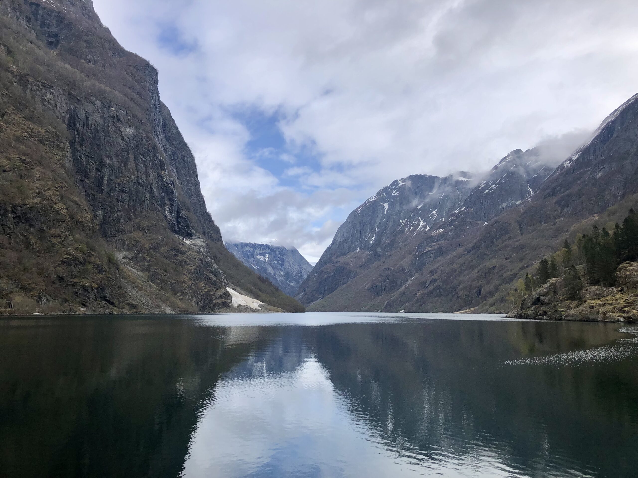 Krása, ale zlatý hřeb je opravdu již zmíněný 17 km dlouhý fjord. Tam se nalodíme na elektrickou loď. Dvě hodiny dlouhá plavba nás dostane do městečka Flåm. Síla přírody v plné kráse. Tohle dovede popsat jenom básník. Takže my raději fotíme, natáčíme a kropíme se rosou.