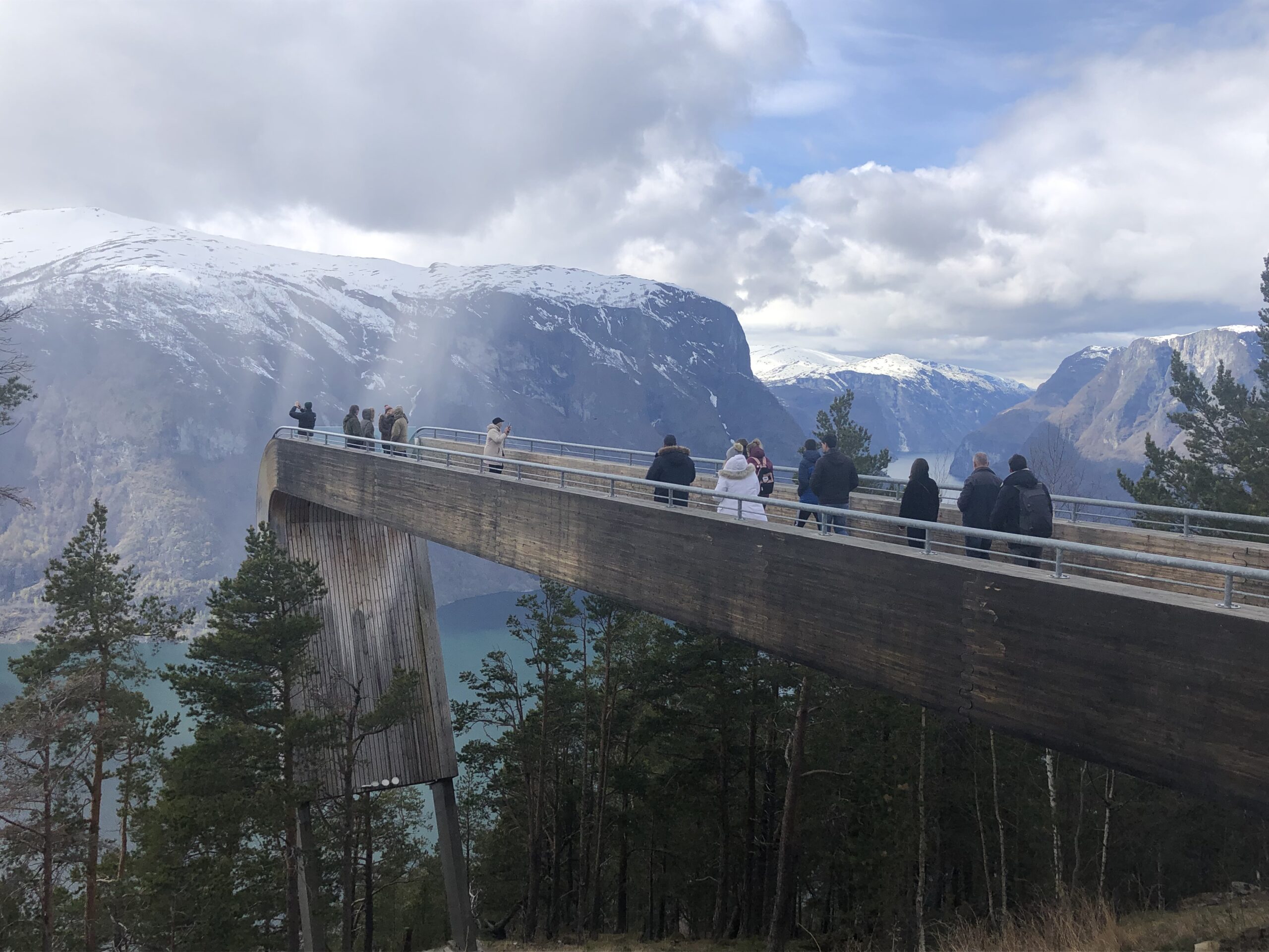 Připlouváme do Flåmu, který na náš působí jako z filmu Tenkrát na západě. Ticho a klid. S pivem si plně vychutnáme tu atmosféru. Zde nás čeká náš mikrobus. Další zastávkou je vyhlídka Stegastein, která shlíží z výšky 600m na již zmíněný fjord.