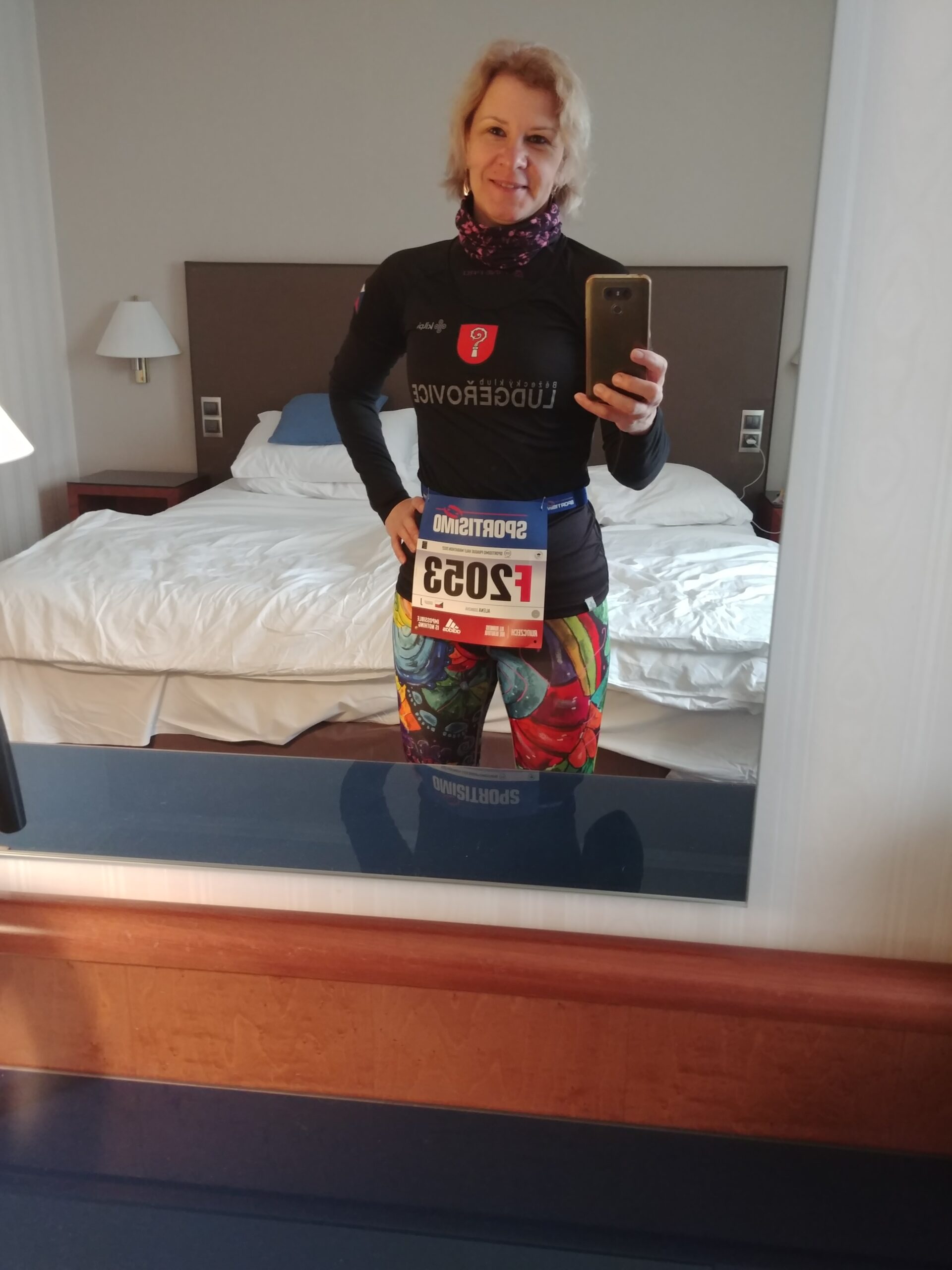 Chtěla jsem ještě stihnout navštívit běžeckou speciálku, ale bohužel zavírají za půl hodiny. Tak nic, nové boty nebudou. Jdeme se raději nadlábnout. Volíme italskou restauraci a dáváme si těstoviny-moje předzávodní tradice. A samozřejmě iontový nápoj – Plzeň. Večer mi chodí velmi motivující zprávy od bežců BKL. Je to moc milé, že i když tady nejsou, tak to prožívají se mnou! Ale začínám být krajně nervózní. Kladou na mě vysoké nároky a stále zkracují čas ,kdy mám doběhnout! Budu hájit barvy klubu sama, tak nesmím udělat ostudu! Zkouším usnout a budu doufat, že zítra nebude sněžit.