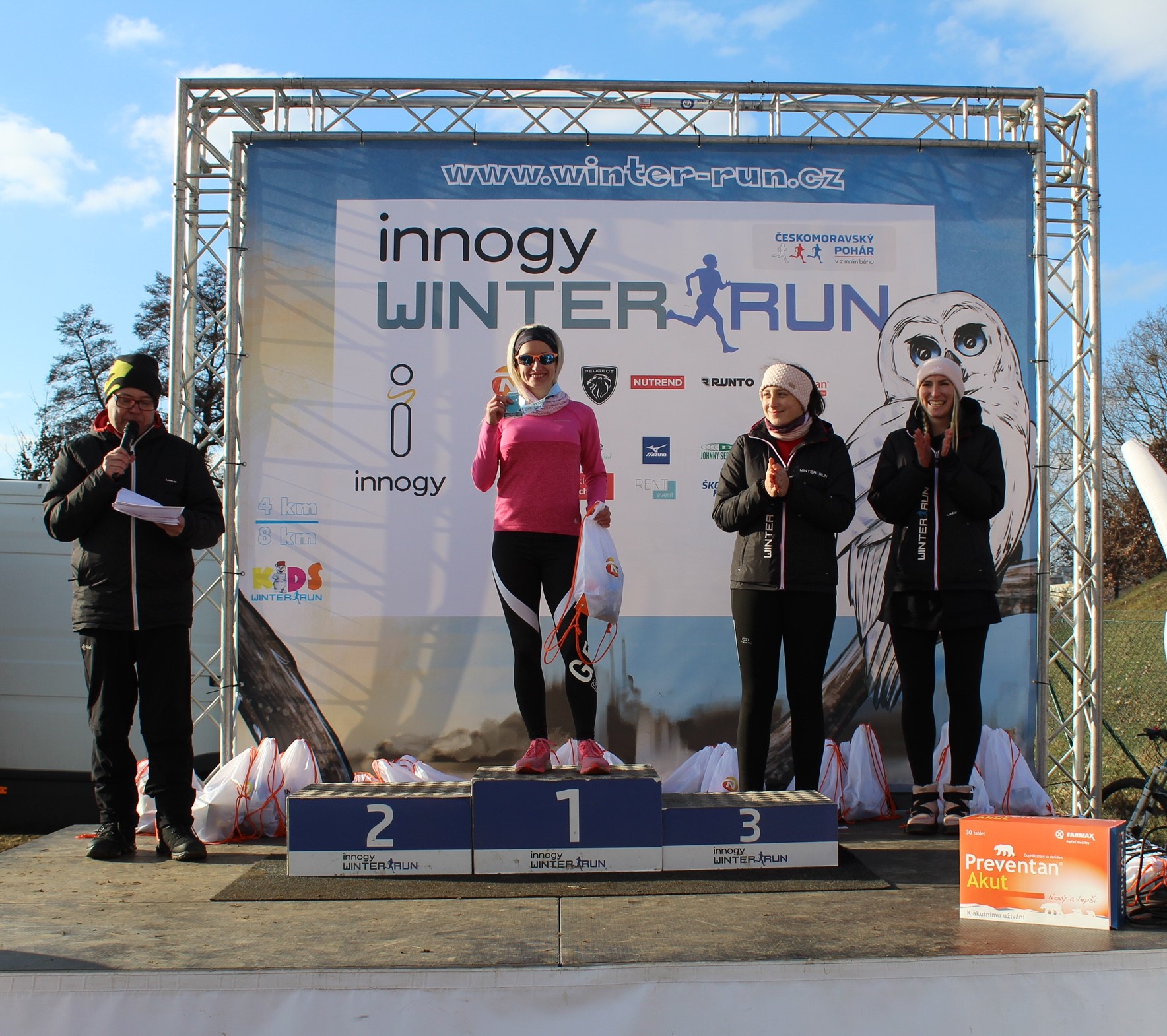 Po doběhnutí do cíle přišlo objetí nejbližších a vzájemné gratulace. Taky jsem se seznámila s druhou ženou závodu, jmenuje se Vanda. Normálně běhá ultratraily a tohle byl její první start na Winter Runu. Díky ní jsem se dostala k úžasnému cílovému času 0:15:34, načež jsem záhy zjistila, že je to nový traťový rekord žen na brněnské čtyřce. Takže dvojitá radost z vítězství. Už se těším na další Winter Run.