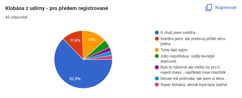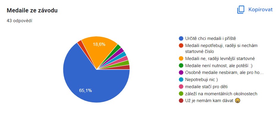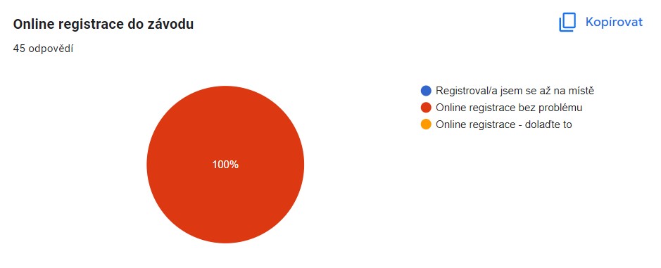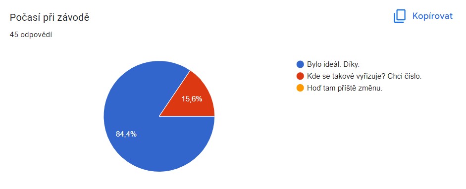 Po závodě byli obesláni dotazníkem spokojenosti všichni předem zaregistrovaní běžci. Z celkového počtu 112 emailů vyplnilo dotazník 45 běžců. Odkaz na dotazníkový formulář je zde.